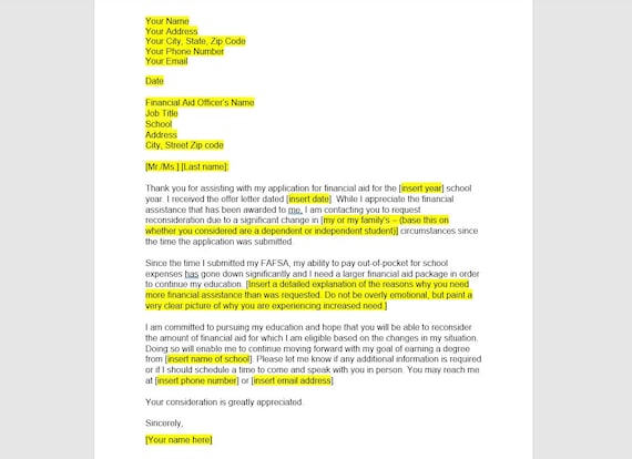Financial Aid Appeal Letter Template Financial Aid Appeal Etsy